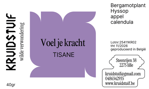 “Voel je Kracht” is een hartverwarmende kruidenmengeling die je innerlijke stevigheid omarmt. Bergamotplant en hyssop brengen zuiverheid en helderheid, terwijl appel een milde, natuurlijke zachtheid toevoegt. Goudkleurige calendula rondt het geheel af met haar lichte bloemige warmte. Een kopje dat je uitnodigt om diep adem te halen… en je kracht te voelen.”